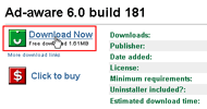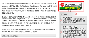 1. 上の「Ad-aware」の入手先のURLをクリックすると左のような画面が出てきますので、その中の右側にある「DOWNLOAD.COM」をクリックします。 |