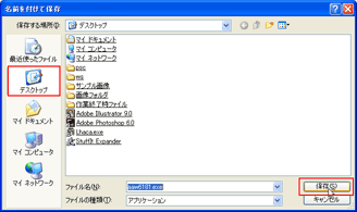 4. 保存する場所はここではディスクトップにして、ファイル名もそのままで「保存」をクリックします。 |