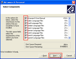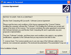 6. ここから、「Ad-aware」のインストールです。左の画面になりますので、「Next」をクリックします。 |